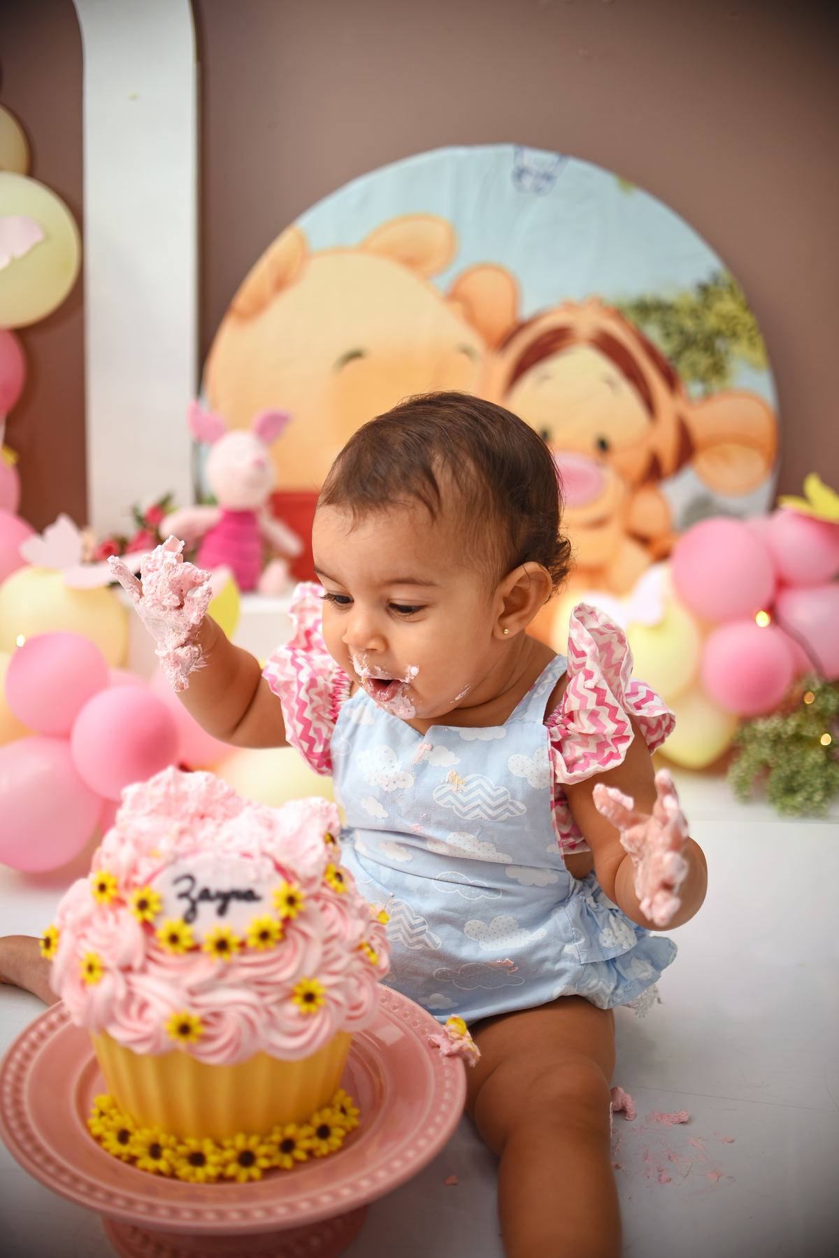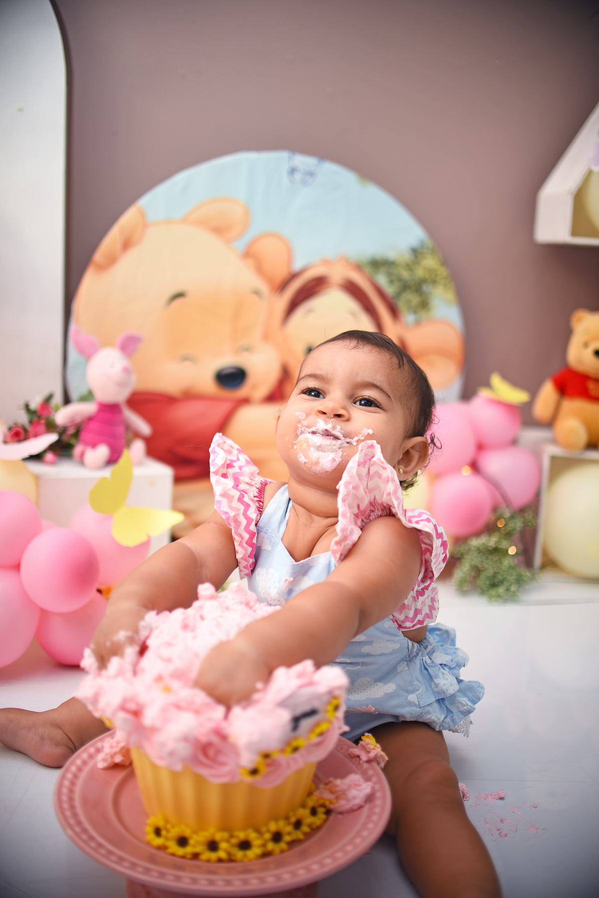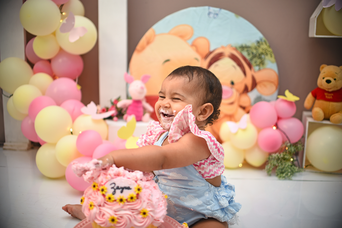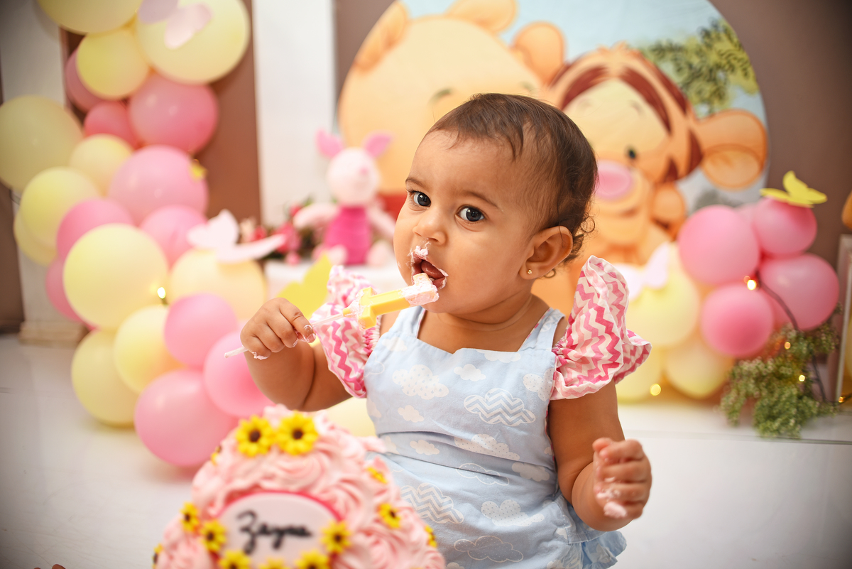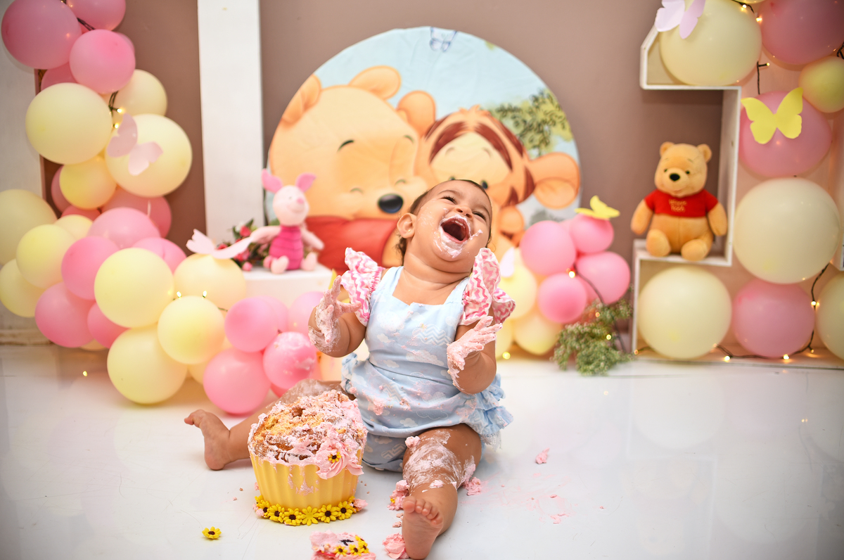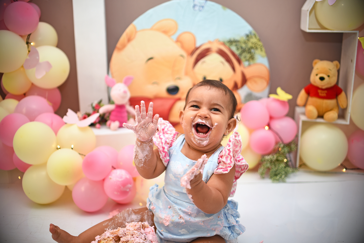 Zayra fez todo o Ciclo no nosso Estudio, ensaio gestante, newborn, acompanhamento 3,6,9 e o Smash the Cake para comemorar 1 aninho. O tema escolhido Pooh. E ela aproveitou demais a bagunça com o Bolo, tivemos fotos com a mamae, com o papai, com os dois juntinhos! E todas as etapas do nosso smash ( fotos do bebe sem o bolo, fotos do bebe com o bolo e a hora do banho)